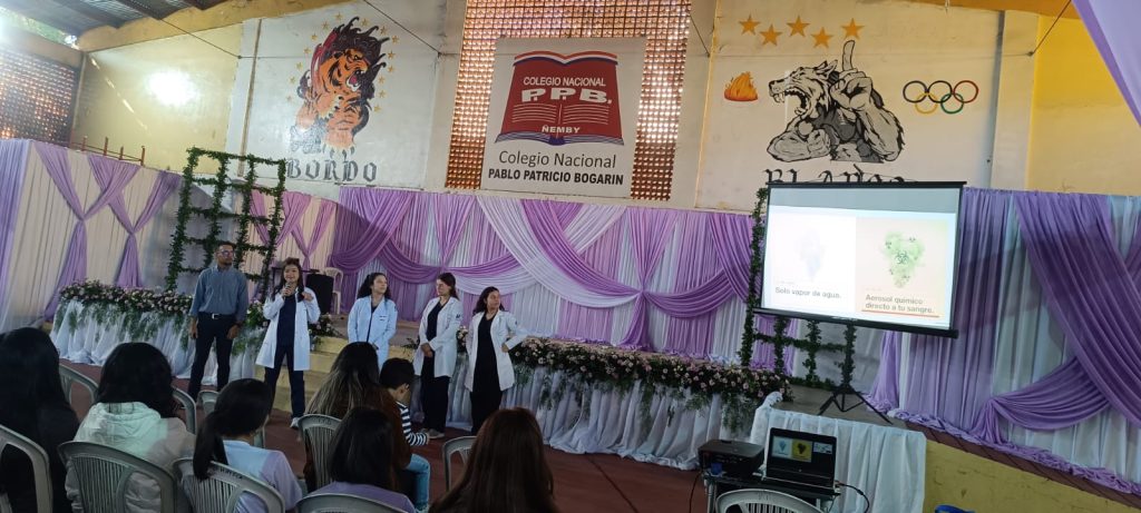 La iniciativa consistió en una charla educativa dirigida a estudiantes de séptimo, octavo y noveno grado, así como de primero y segundo año del bachiller técnico en salud, en respuesta a la invitación de la dirección de una institución educativa. La actividad estuvo a cargo del Dr. Marco Velázquez, acompañado por las estudiantes de primer año de Medicina Melanie Ascona, Eliane Román, Tatiana Jara y Gabriela Ruiz.